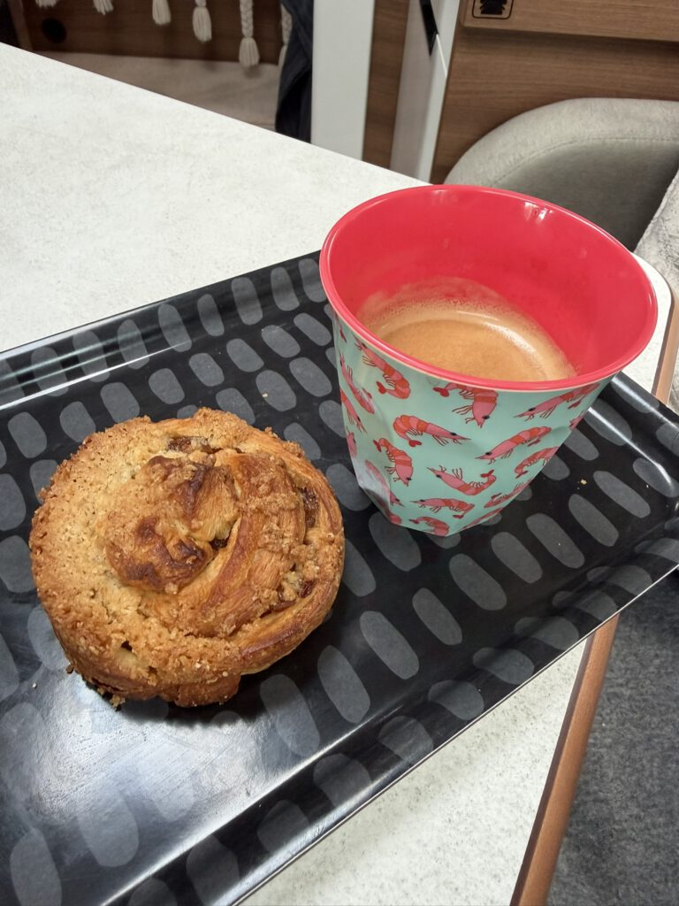 På hemvägen från Göteborg körde vi inom Forsbergs i Hyssna och kollade fler fina husbilar.. Älskar Concorde, men såå stora. Köpte varsin ny kaffemugg. Min med räkor 😉