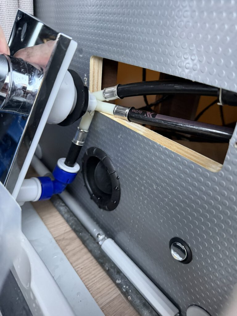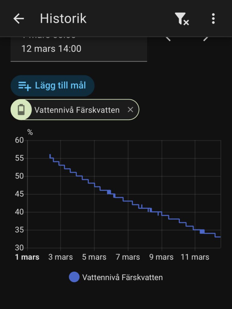 Neeej!! Märkte på min nivåmätare att färskvattnet sedan senaste resan minskat med 20 liter. Hoppades att det skulle bara vara bottenventilen som inte var stängd ordentligt. Men sån tur har man aldrig.